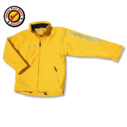 Haina weatherproof culoare galben cu gri, logo snowbike- reflectorizant buzunare, multiple buzunare, buzunar pentru telefonul mobil.