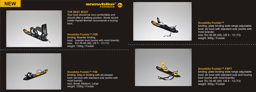 Din sezonul 2010-2011 snowbike-ul se adreseaza direct si fanilor snowboard-ului prin noul design al miniskiurilor fsb. Acestea se pot folosi direct cu boots pentru snowboard.